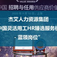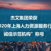 Read More- 杰艾集团荣获“2020年上海人力资源服务行业诚信示范机构”称号杰艾集团再次荣获 “2020中国招聘与任用供应商价值大奖”