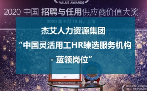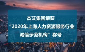 Read More- 杰艾集团荣获“2020年上海人力资源服务行业诚信示范机构”称号杰艾集团再次荣获 “2020中国招聘与任用供应商价值大奖”