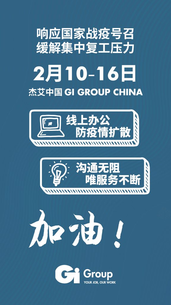 Thanks again for your trust and support to Gi Group China all the way. Let’s overcome all the difficulties and work together to build a better 2020!