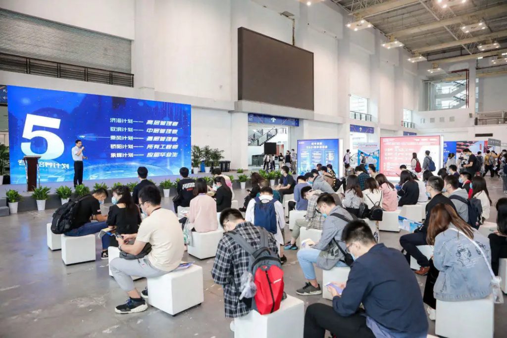 活动当天,各类产业名企云集,共有1017家单位推出26471个岗位需求,全国180余所高校参会,线上线下洽谈总人数达21542人。除此之外,本届“高洽会”首次采用线上线下同步对接的方式进行,还设置了交流展示馆、区域合作引才馆等特色专题馆,并展示了直播带岗、AI视频面试、5G云面试等最新招聘黑科技,旨在以更加开放、更创新、更高效的方式发现人才和吸引人才,全力促进长三角地区人力资源的流动和优化配置。