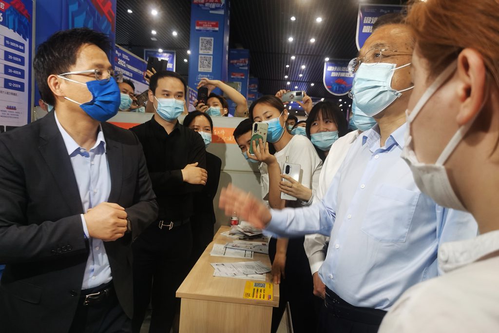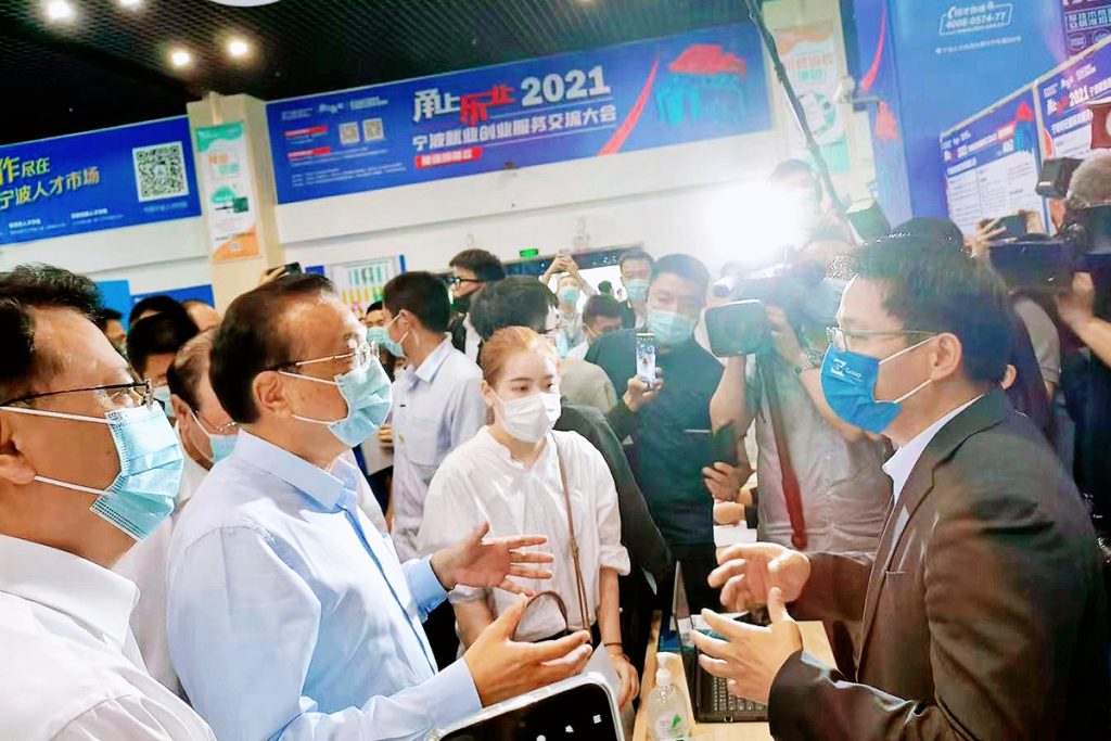 5月24日下午,国务院总理李克强先生到访宁波人力资源大厦,考察宁波人才市场,并与现场正在参加“甬上乐业——2021宁波就业创业服务交流大会”的工作人员和参展人员进行了友好的互动和亲切的交流。
