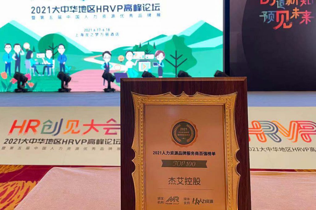 6月17日,“2021大中华地区HRVP高峰论坛暨第五届中国人力资源优秀品牌展”于上海龙之梦大酒店隆重举行。杰艾控股积极主动地参与了此次评选活动,凭借其出色的服务实践和品牌影响力,成功获得了“MeetHR2021人力资源服务商奥斯卡大奖——2021人力资源服务商百强榜单之一“的荣誉。