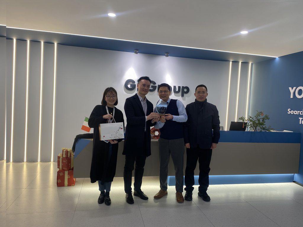 近日,宁波市明楼街道屠主任一行莅临杰艾控股宁波总部,与杰艾控股大中华区国家经理刘卫兵先生进行了友好会晤与交流,并为杰艾控股颁发了“宁波市明楼街道2021年度骨干企业”的荣誉奖杯。